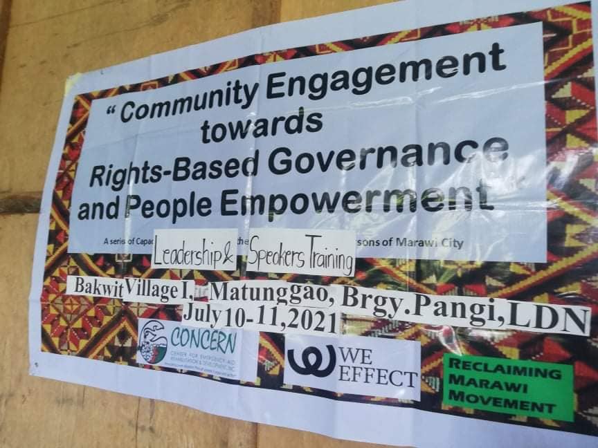 CONCERN, Inc. with the support of We Effect and in partnership with the Reclaiming Marawi Movement is currently implementing a project which hopes to strengthen the capacity of young Meranaw IDPs who are still living in the temporary and transitional shelters, more than 4 years have passed after the Marawi siege. The project aims to empower the young Meranaw IDPs on the importance of their participation in rights claiming.
