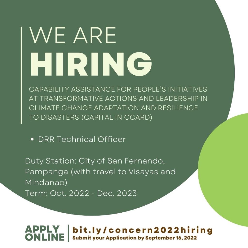 The Center for Emergency Aid, Rehabilitation and Development (CONCERN) Inc. is accepting applications for the following project-based positions: