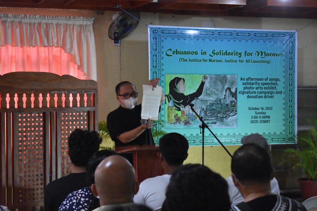 The activity was also held to launch the “Justice for Marawi, Justice for All” campaign in Cebu. It featured a photo exhibit, cultural performances, signature campaign and solidarity messages from the Association of Men Religious and Mission Societies of Cebu (AMRAMSOC), Kilusan para sa Pambansang Demokrasya, KILUSAN-Cebu, Commission on Interfaith Dialogue of Archdiocese of Cebu, Muslim Council of Elders Visayas (Region 6, 7 & 8), Carolinian Political Science Society (CPSS), Independent Vendors for Empowerment and Development-IVEND and CONCERN.