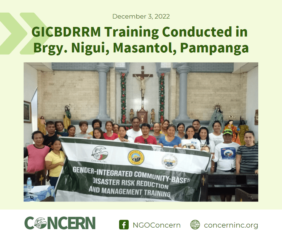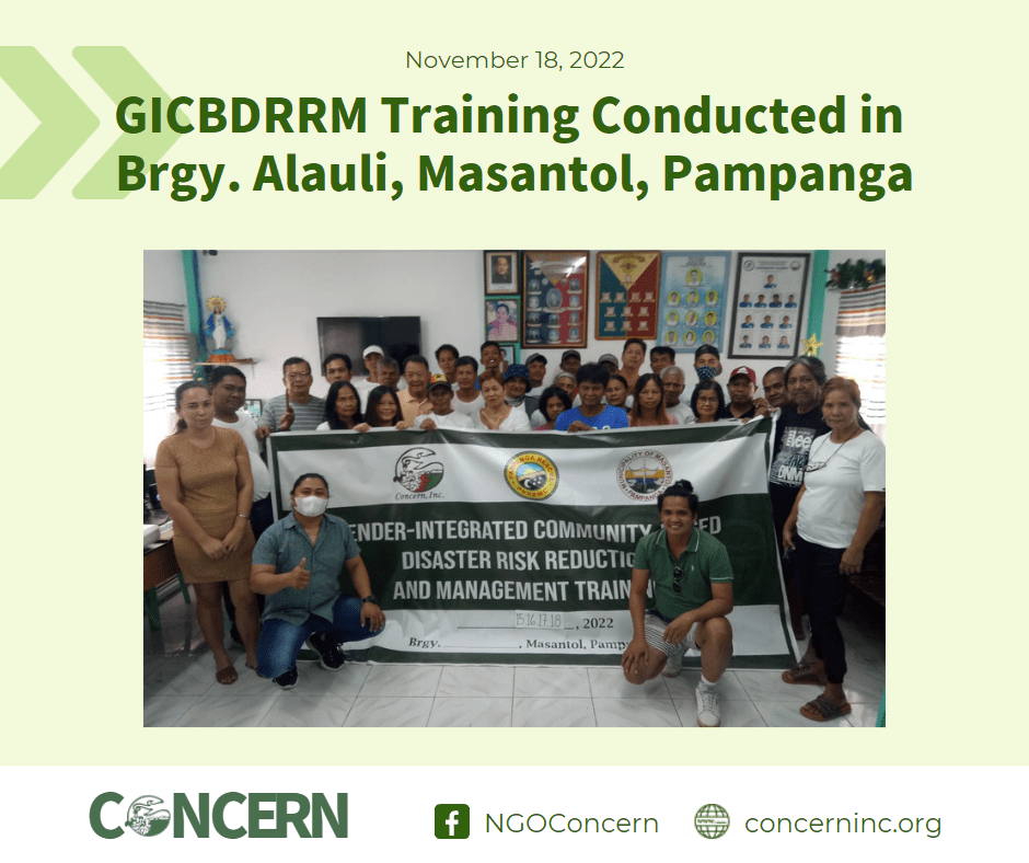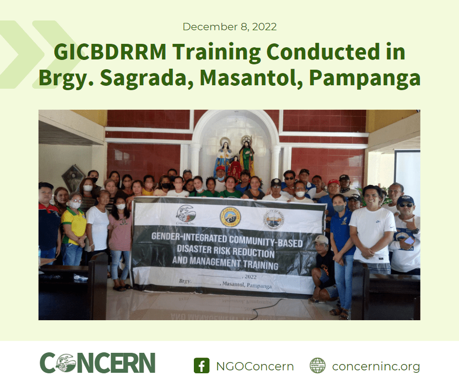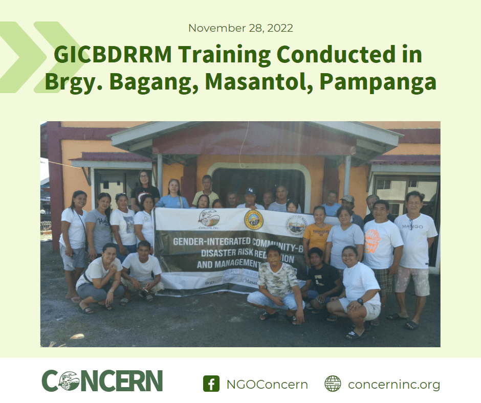 CONCERN, through the support of the Pampanga PDRRMO and the Masantol MDRRMO, conducted capacity-building sessions on Gender-Integrated Community-Based DRRM from November 15 to December 15, 2022 in six barangays along the leftbank of the Pampanga River, which are affected by flooding.