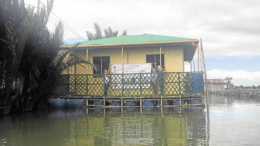 The floating garden features plastic containers securely tied to support a 16 sqm. plot of water lily-fertilized soil bedding for a variety of vegetables such as string beans, okra, tomato and eggplant.